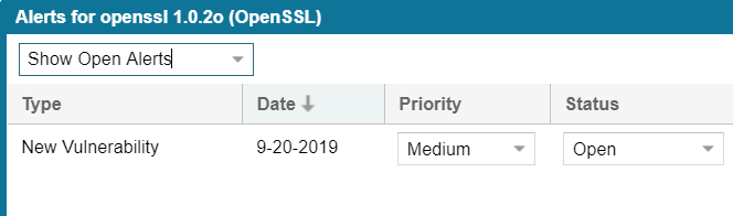 You can change this value as needed. See Changing the Priority of an Alert. For more information about the severity levels for security vulnerabilities, see Viewing Security Vulnerabilities for Project Inventory. |