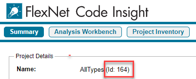 Obtaining the Project ID from the FlexNet Code Insight Web UI