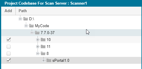 From the interactive directory tree representing the project’s codebase on the Scan Server, select the checkbox next to one or more top-level directories that you want to scan. To scan only specific subdirectories in a top-level directory, drill down in that directory and select the desired subdirectories.