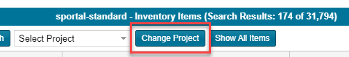 | • | If you choose Select Project, a dialog is displayed from which to select a project. Once you choose the project, the inventory list is refreshed with the inventory for that project only. |