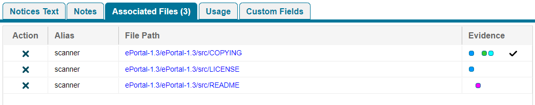 Note:Currently, license evidence is the only type of open-source and third-party evidence reported for files scanned by a Code Insight scan-agent plugin on a remote system.