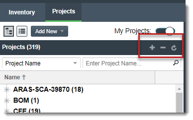 all folders in the project tree. By default, all folders are collapsed. These buttons enable users to more easily navigate project trees that contain a large number of folders and files within folders.