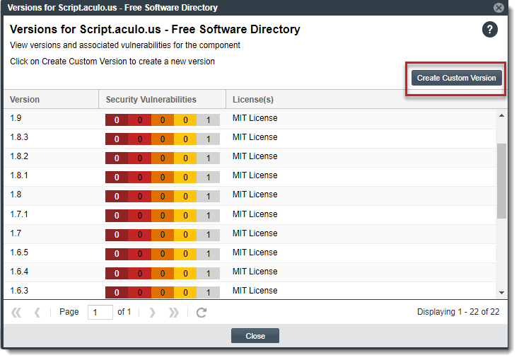 1. On the Versions for <component> window, click the Create Custom Version button.