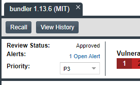 Project Contacts can be alerted via email to any projects and inventory items that contain new security vulnerabilities so that they can be reviewed and acted upon if necessary. For email alerts to be sent, the email server must be enabled and configured. For more information, see “Configuring an Email Server” in the Installation & Configuration Guide.