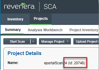 The following are some ways to locate the project ID in the Code Insight Web UI.