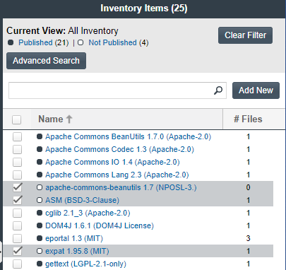 With the availability of the inventory item on the Project Inventory tab, users can then further review the item’s security or legal issues and, if appropriate, take steps to remediate and prepare the item for inclusion in the final Third-Party Notices report for the project.