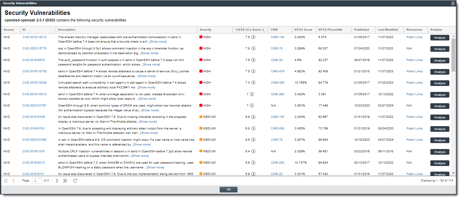 4. | Locate the vulnerability you want to suppress, and click its corresponding Analyze button. |