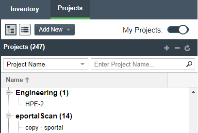 Alternatively, open the project to view its inventory on the Project Inventory tab. See Opening a Project for details.