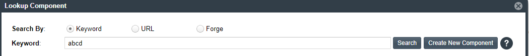 1. After you have performed Step 1: Access the “Lookup Component” Window, select the Keyword option either on the Lookup Component window or on the Components tab on the Global Component & License Lookup tab.