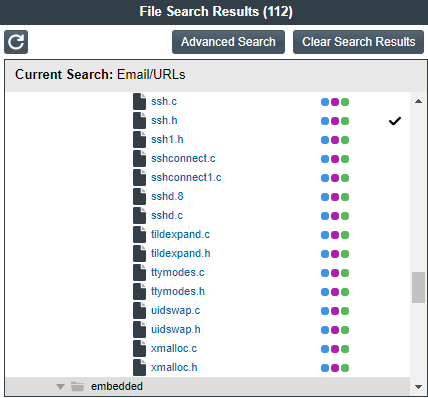 | 3. | Navigate to the File Search Results pane, which now shows a codebase tree containing the files that meet your criterion. |