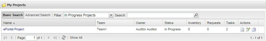 Click the project name (Name column) or the Magnifying Glass icon (Actions column). The Summary tab appears. |