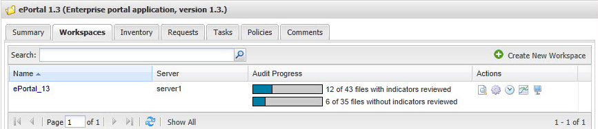 | 4. | Select a workspace to scan by clicking on the workspace link in the Name column. |