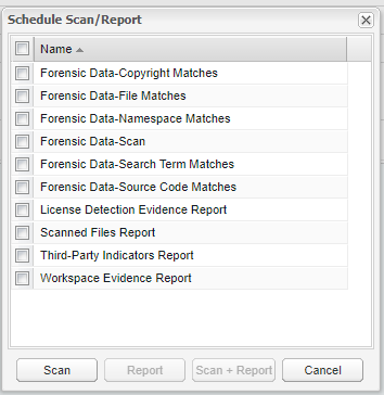 | 5. | Click the Schedule Scan/Report button. The Schedule/Scan Report dialog appears with a list of available reports to generate. |