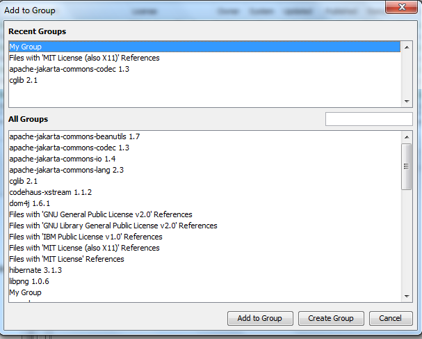 | 3. | Select Add File to Group. The Add to Group dialog appears: |