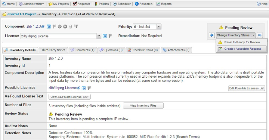 | 3. | From the associated project, create an inventory item that matches the request component, version and license. |