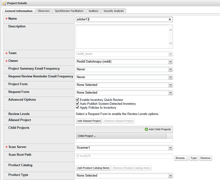 | 2. | On the Project Details page, click the Add Product Catalog button to display Product Catalog items. |