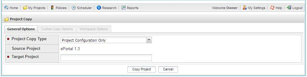 Select a project from the list and click the Project Copy icon ( ) associated with that project. The Project Copy page appears: |