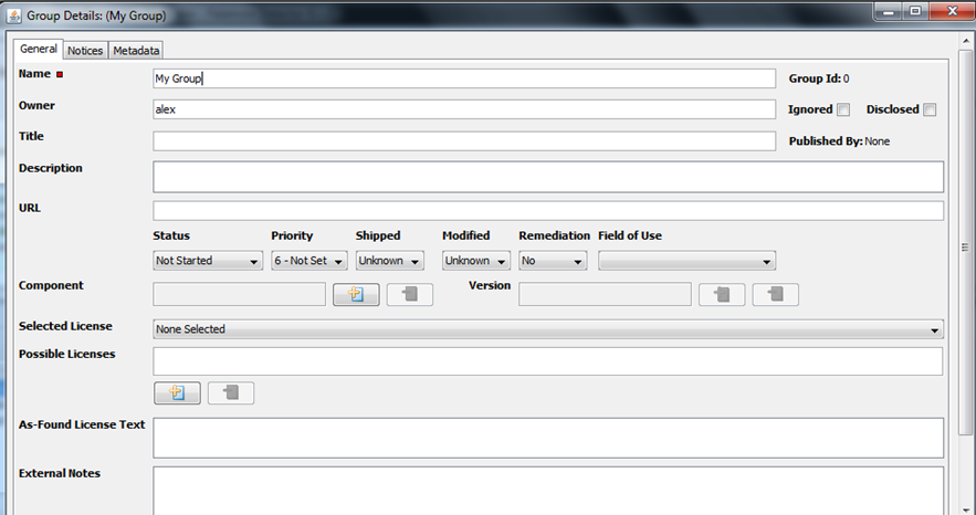 | 3. | Enter a name and an owner for the new group. (The owner field defaults to the current user login name.) |