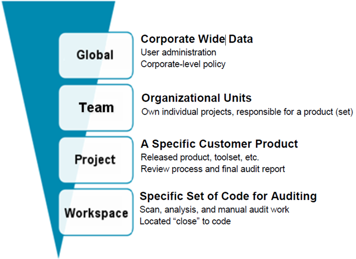 Global data is comprised of teams. Teams are comprised of projects, and projects are comprised of workspaces: