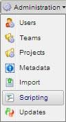 | 1. | Access the Admin Home page by clicking the Home button in the top left-hand corner. Access the scripting feature from the Administration pull-down menu: |