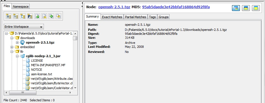 To access the contents of an archive press the (+) icon to the left of the archive name in the file tree located in the Files tab. This will expand the archive, allowing you to view evidence for and operate on the files inside the archive.