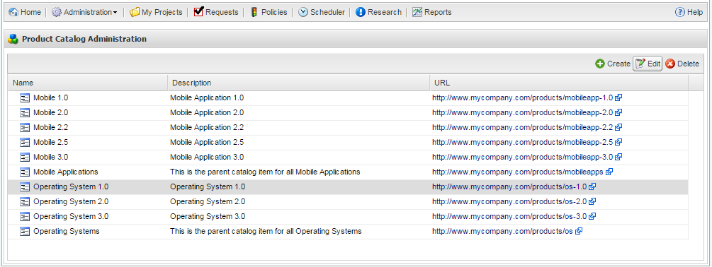 Click Save. Items that are parents are displayed with a folder icon in the Product Catalog Administration list. |