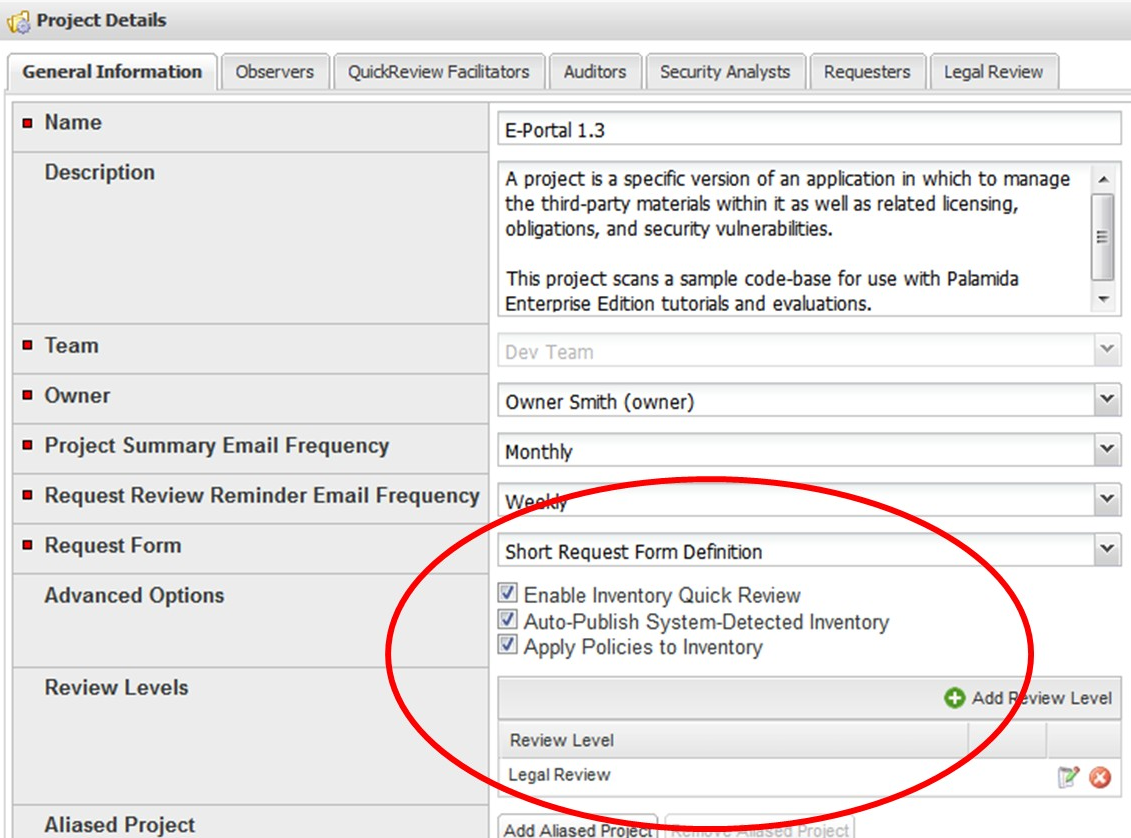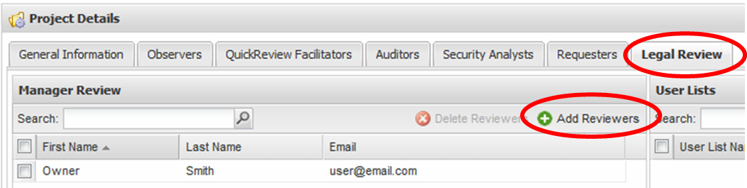 For each Review Level created, a new tab is added to the Project Details with the same name given for the Review Level. You must associate users who are allowed to approve project requests. |