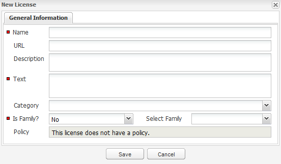 Note:The Policy field is read-only and contains information regarding any associated policies for this license.