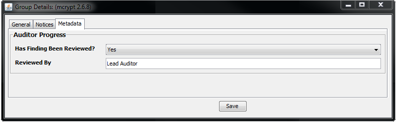 Third-party notice fields are located on the Notices tab of the Group Details window in Detector.