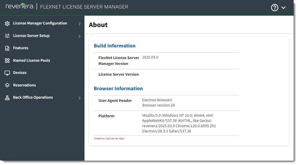 When the installation is complete, the License Server Manager launches automatically and displays the About page.