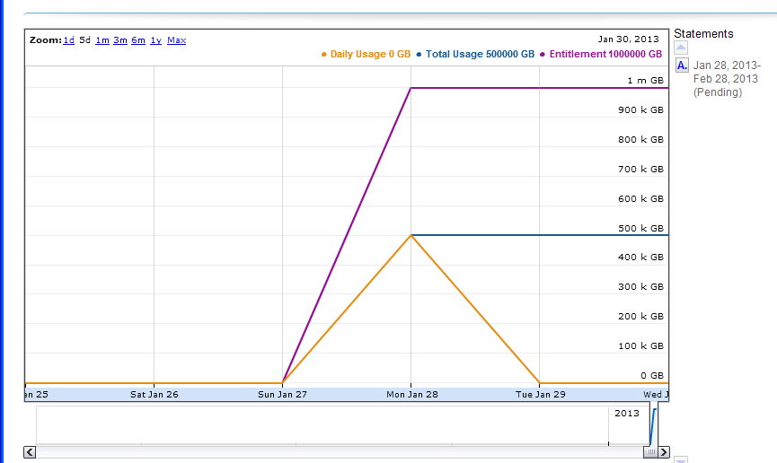 Usage information can also be displayed in an interactive Flash-based timeline. Commands in the upper left corner enable zooming in to different time periods, and you can click and drag the graph left and right to control the dates for which data are being displayed.