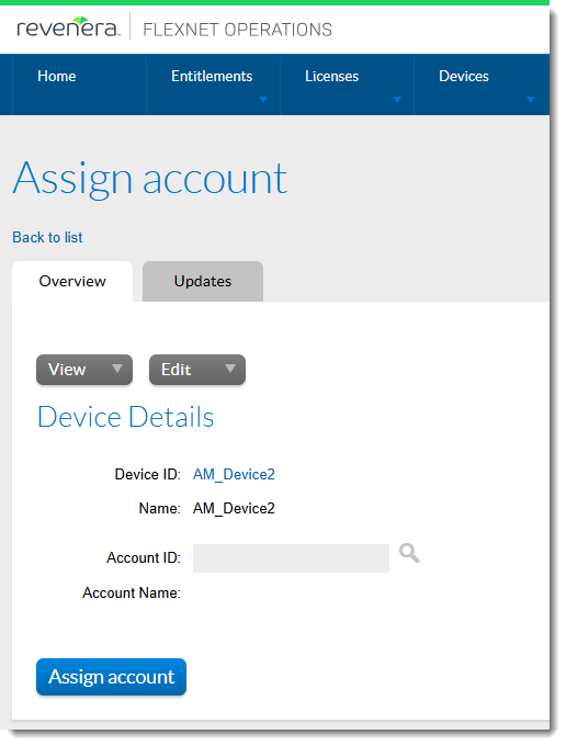Clicking Reassign Account opens the Assign account page, where you can select a new account for the device.