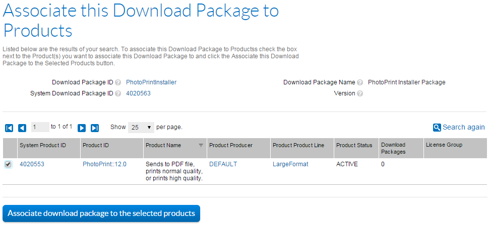 Repeat the steps above to associate the PhotoPrintDocumentation download package with the PhotoPrint product as well.