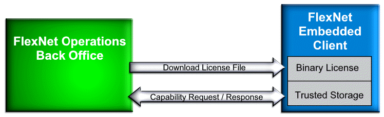 FlexNet Embedded supports different ways of representing license rights on a system. A producer can create customized license models by combining the two different ways to store licenses: