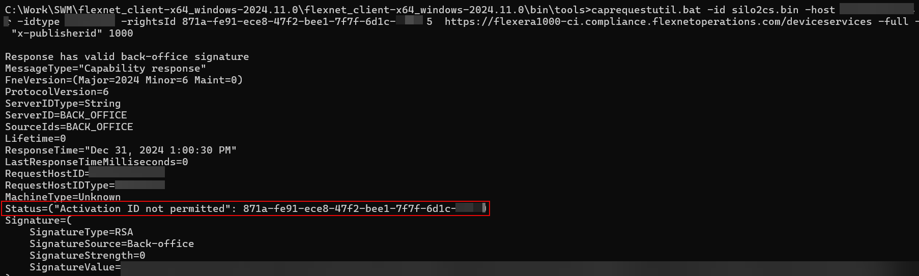Status=("Activation ID not permitted": 5f4d-123e-a456-7894-b123-66f4-88h7-56f3)