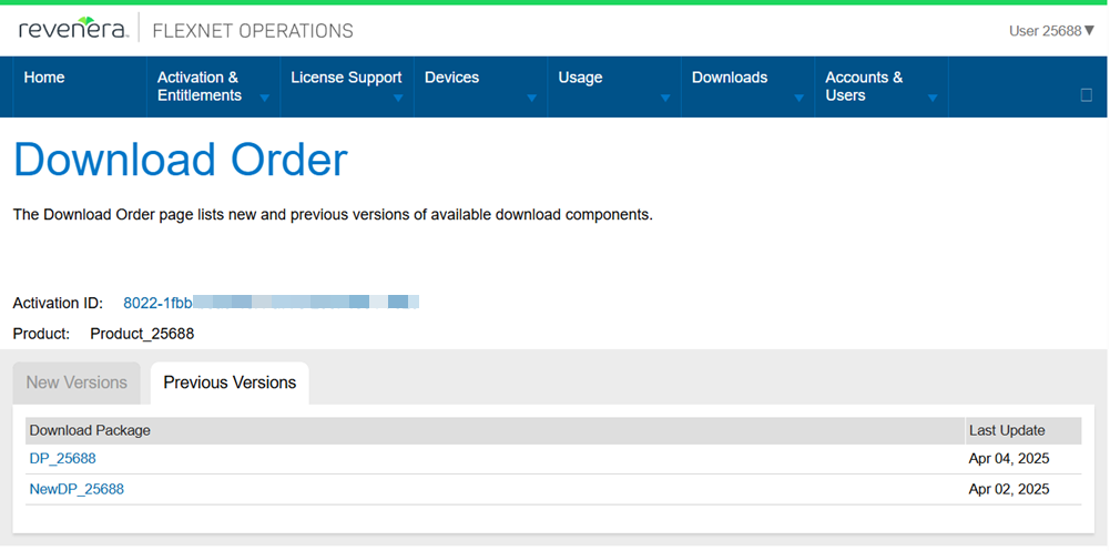 In the End-User Portal, download packages could previously not be downloaded from either the New Versions or Previous Versions tab on the Download Order page. (The Download Order page is available by selecting Activation & Entitlements > List Entitlements and clicking the Download Now link for an entitlement). Instead of a download link, both tabs showed the error message “There are currently no available downloads defined for your account.” However, downloads were indeed available, as confirmed on the List Downloads page.