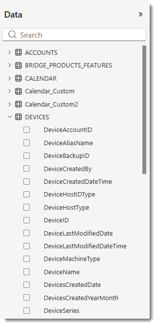 Drag a field onto the report canvas to create a new visualization, or drop it onto an existing visual to enhance it with additional data. Alternatively, drag a field onto a specific bucket (for example, in a bar chart, you could drag the ProductLine data field onto the X-axis bucket to have all product lines represented on the X-axis).