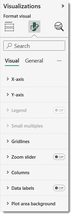 to open the Format visual options. The available settings vary based on the type of visualization currently selected.