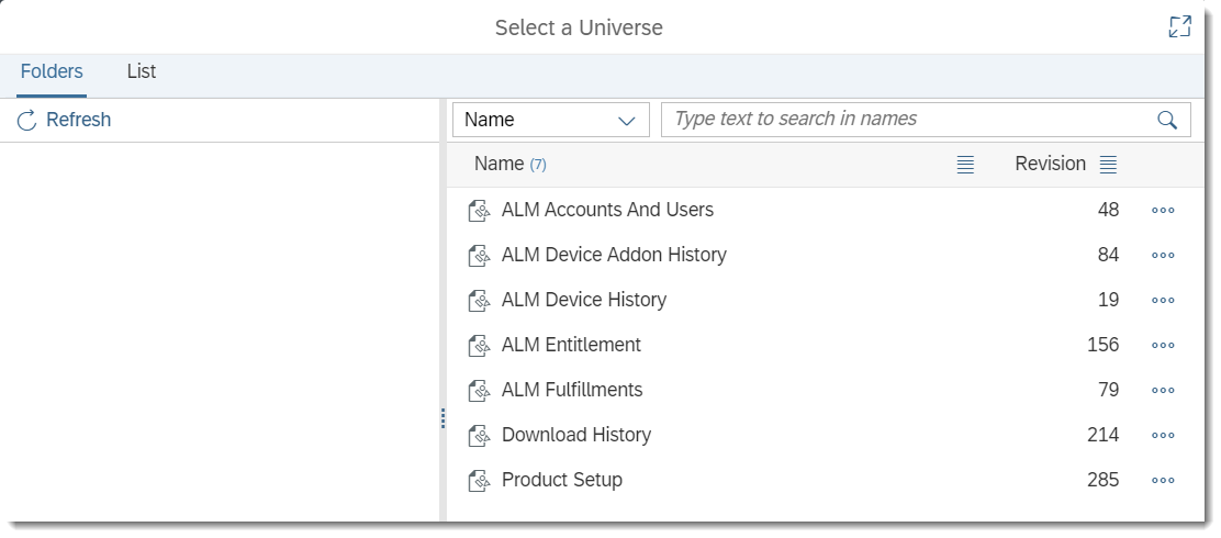 Tip:For a brief description of a universe, point to its entry in the list to view the description.