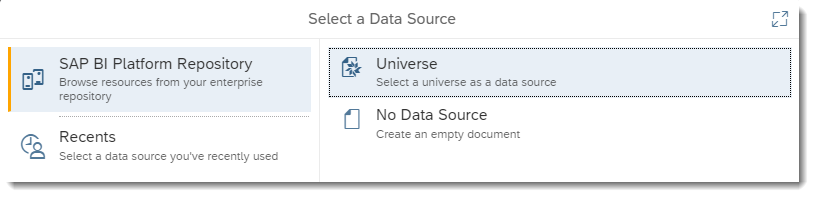 | 2. | Click SAP BI Platform Repository and select the Universe data source. Click OK. |