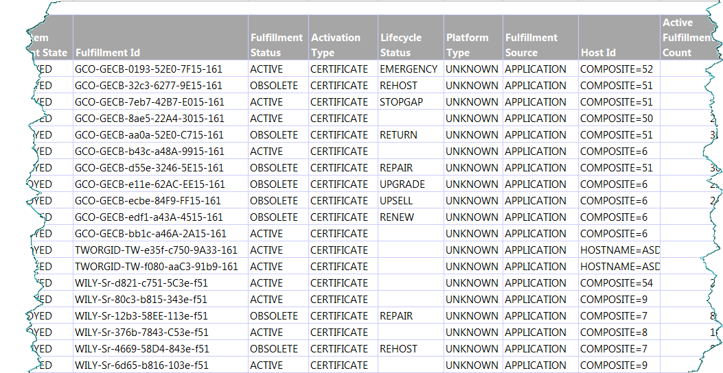The Fulfillments Created in Last X Days report shows recently created fulfillments with information about their owner, entitlement ID, activation ID, product name and version, as well as the entitlement lines’ creation, expiration, and maintenance end dates.