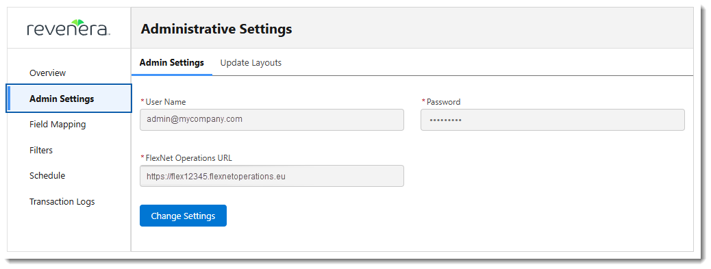 An example of the populated Admin Settings screen.