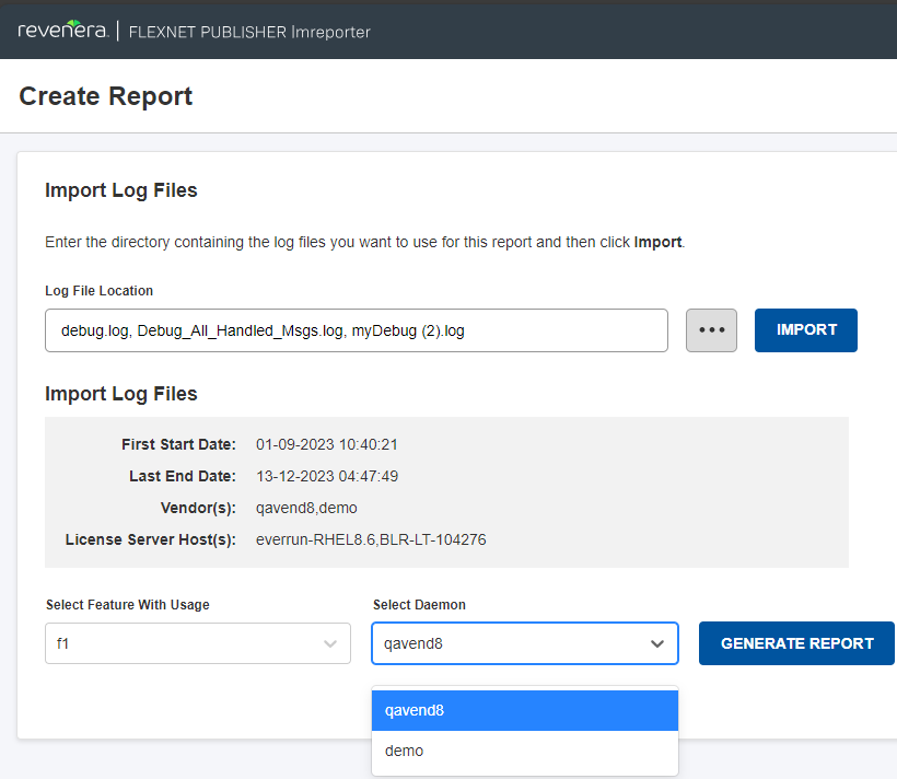 The following displays selecting a specific vendor daemon from the Select Daemon drop-down: