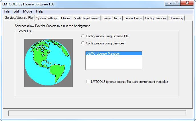 In order to control the operation of lmgrd from the lmtools user interface, you first must configure it as a license server manager service. Follow the procedure in Configuring the License Server Manager as a Windows Service before proceeding.