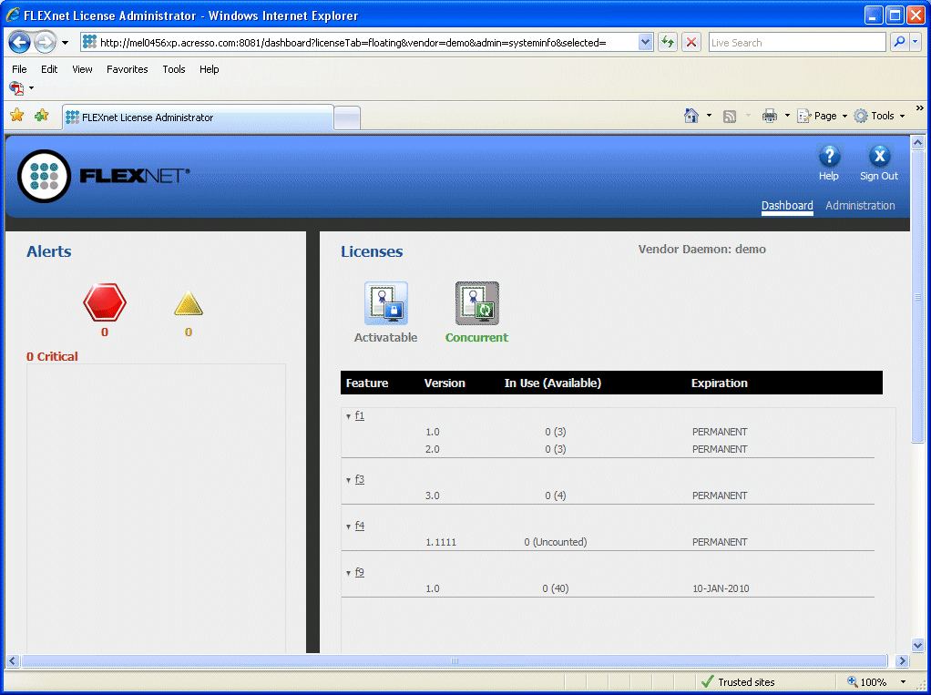 | 3. | Log on to the lmadmin web GUI as an administrator. The lmadmin dashboard is displayed. |
