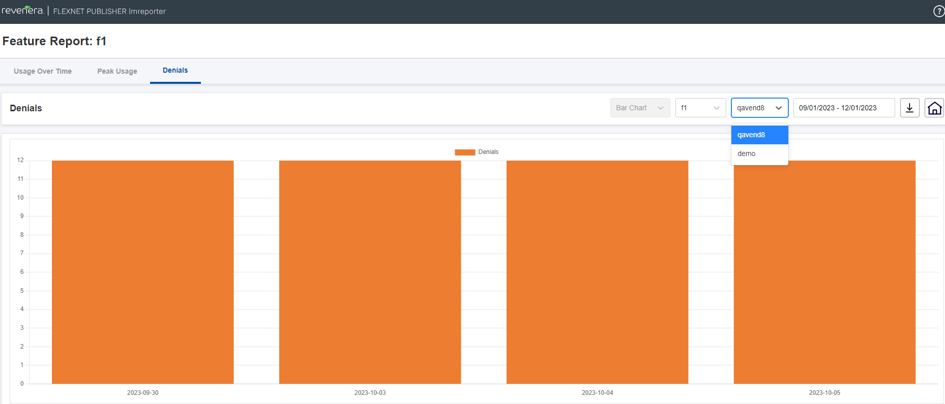 Figure 3: Denials Tab with Vendor Daemon Drop-Down