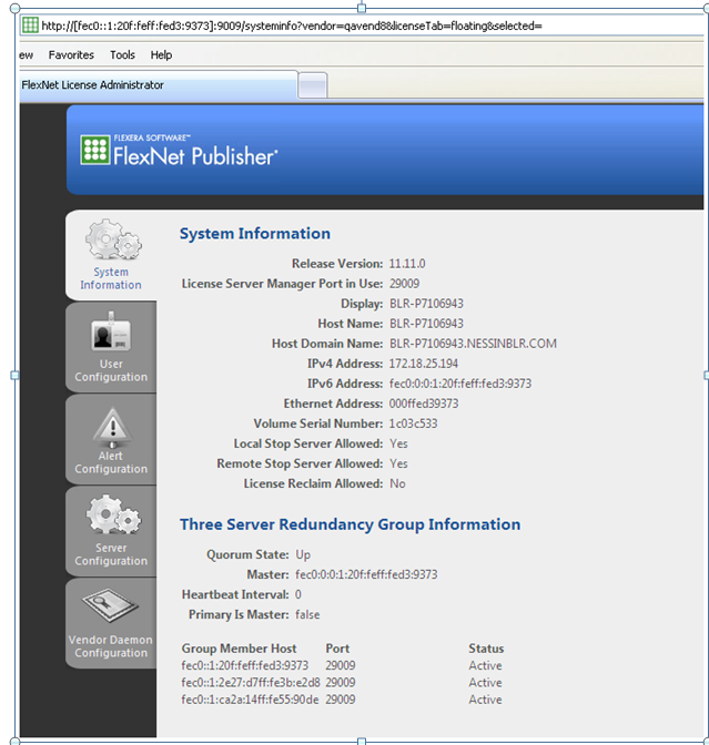 Below is a sample output of the lmadmin GUI for Three-Server Redundancy: