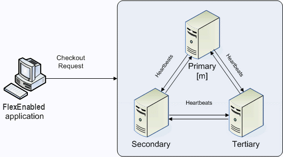 Once the initial communication has been established, each license server periodically sends a heartbeat to the others. Heartbeats are messages sent over TCP/IP. Each license server sends a heartbeat and waits for a response from the other license servers. If a license server does not receive a response, it shuts down the vendor daemon so that it cannot serve licenses. A publisher or license administrator can configure the amount of time a license server waits to receive a heartbeat using the HEARTBEAT_INTERVAL property.