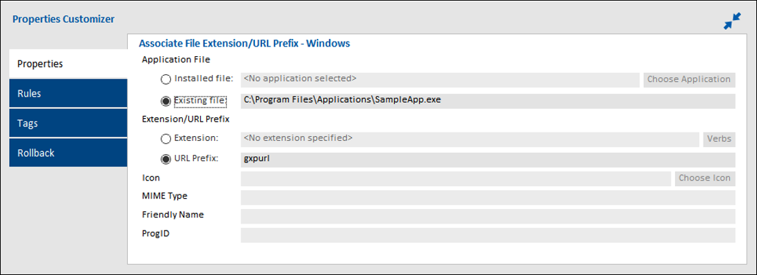 Enhanced "Associate File Extension - Windows" action to add support for registering URL Prefix with application. The action has been renamed to "Associate File Extension/URL Prefix - Windows". New property "URL Prefix' has been added in this action available in Install and Post-Install phases.