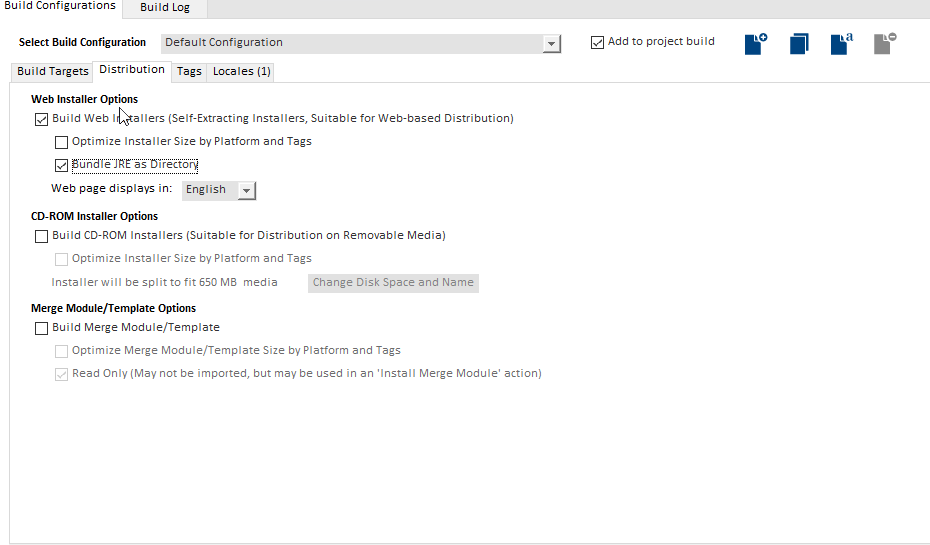 On the Build> Build Installers > Build Configuration > Distribution subtab, under Web Installer Options, there is new option Bundle JRE as Directory to enable you to manage the JRE file.